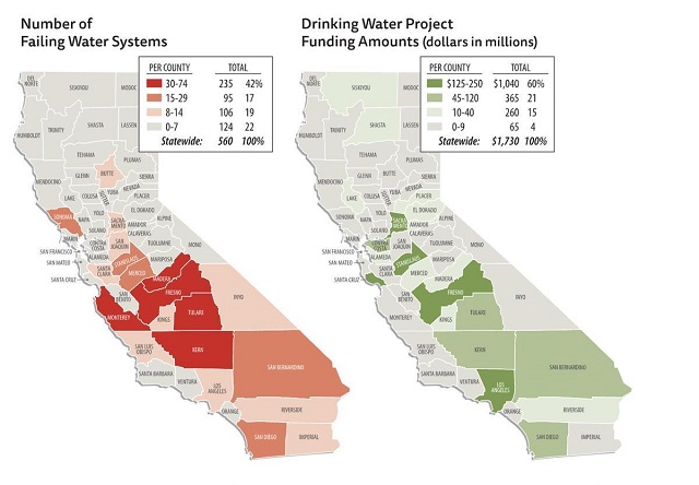 據加州水資源控制委員會調查透露,截至2021年12月,全州已有超過370套供水系統出現問題,導致水質不達標,其中三分之二的供水系統卻仍在為貧弱社區供水,受影響居民超過92萬人。