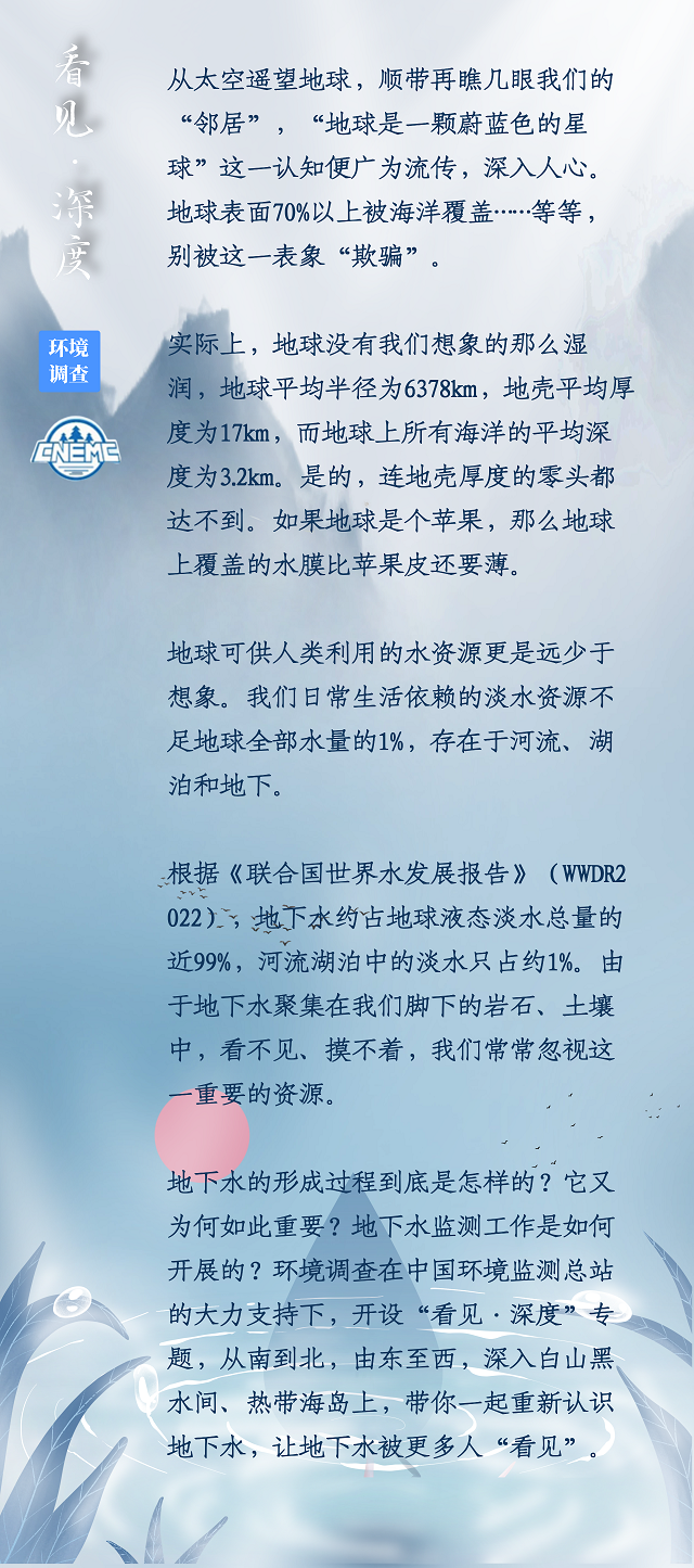 那么,既然整個地下水體系是一個復雜且神秘的系統,看不見也摸不著,地下水監測是如何開展的?為解開這一疑問,中國環境報記者跟隨中國環境監測總站前往一個個采樣現場,這期間又遇上了哪些“懸疑事件”?“會呼吸的井”“憑空消失的井”是怎么回事? 繼續關注“看見·深度”系列,不要錯過后續的精彩報道。
