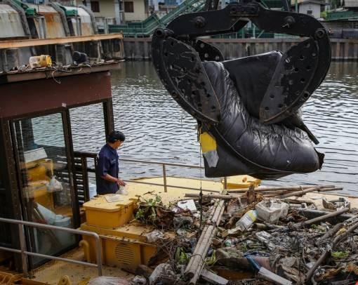 在曼谷市各條河渠流入湄南河的水處理站內,每天有大量垃圾隨河水漂流而來,甚至還有被扔到河里的席夢思床墊、沙發等大件垃圾,每天截獲的各種垃圾多達5至10噸。這些垃圾造成河道阻塞,下暴雨時無法及時排水入湄南河,是造成城市內澇的重要原因之一。