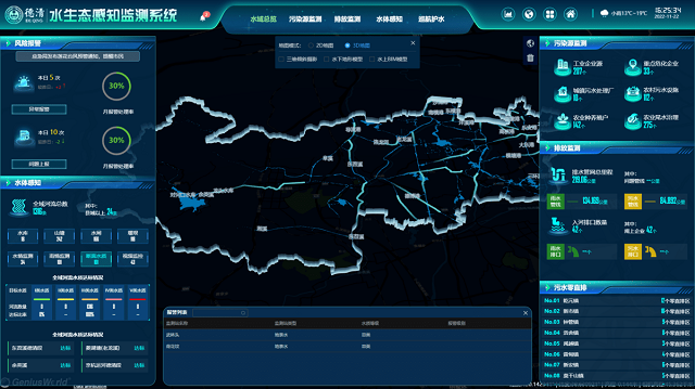 據了解,該項目除了采集接入了應急、氣象、水利、港航、住建局、鎮街道、生態環保、治水辦、農業農村、自然資源等部門的數據外,還收集了重點河道一公里范圍內的污染源,工業園區、對河口水庫、東苕溪等重點位置的水上水下數據,并對排水口、排污口、地下管線等涉及污染源排放的流向進行梳理與排查。