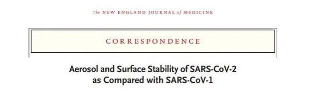 《新英格蘭醫(yī)學(xué)雜志》上發(fā)表的一項最新研究顯示,新冠病毒可以懸浮在小于5微米的飛沫中(即氣溶膠)約半小時,然后落下來并停留在物體表面長達數(shù)小時。