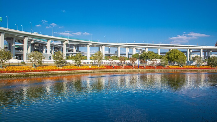 包含高架景觀步道在內(nèi)的濱水漫步道是張家浜生態(tài)清潔小流域的特色,小流域內(nèi)形成了數(shù)十公里縱橫阡陌的濱水道路,搭配親水平臺、水上棧道、人工沙灘等設(shè)施和景點,增加居民的親水體驗。