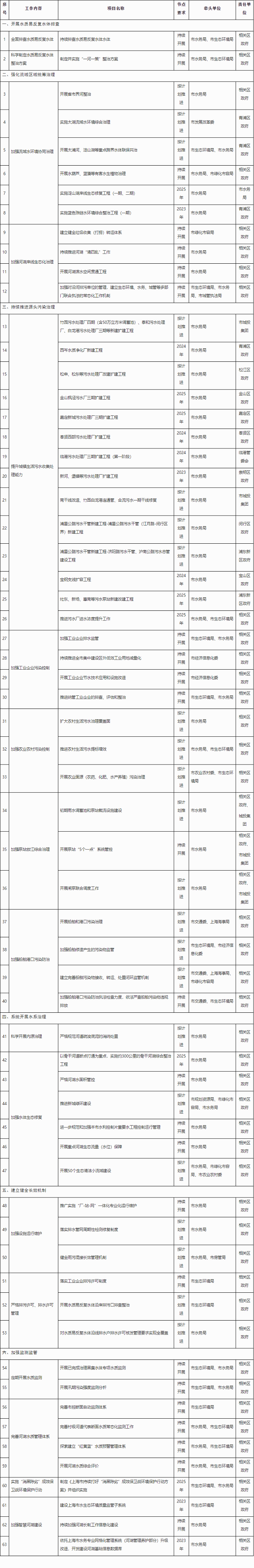附件:上海市持續打好“消黑除劣”成效保衛戰實施方案項目清單
