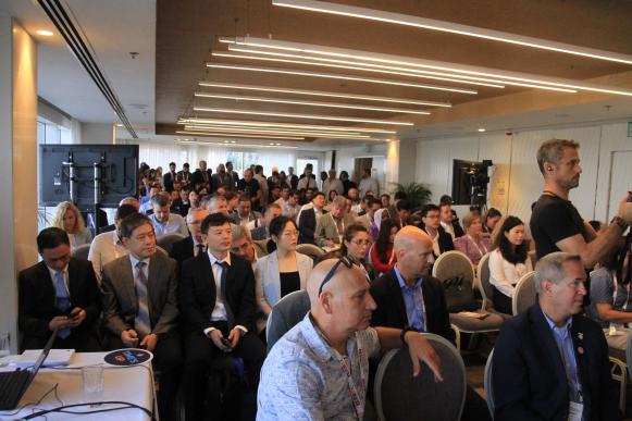 主題報告后由以色列Mekorot工程技術和戰略規劃副總裁Yossi Yaacoby先生主持了主題為“通過創新增強韌性”的小組討論,來自以色列水務局安全應急和網絡高級部門經理Danny Lacker先生、以色列創新局初創部門氣候與健康高級總監Hagit Schwimmer女士、法國國家水工業與企業聯盟(UIE)董事會蘇伊士企業風險投資總監Jean-Luc Venture先生、巴西國家水務和衛生局水務和社會經濟研究主管Felip Tavares先生、美國ICI基金聯合創始董事總經理Gili Elkin女士參加了討論。