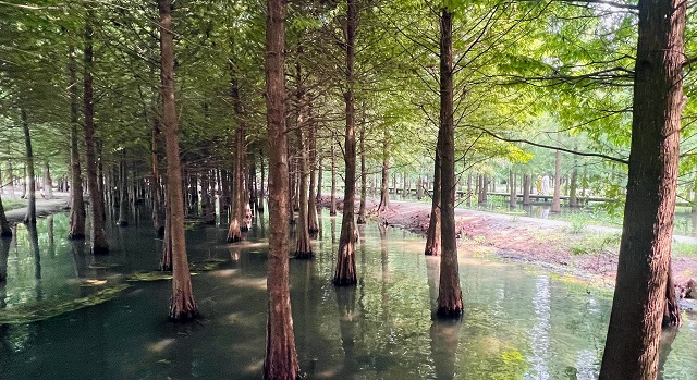 8月,在新龍生態(tài)林,西區(qū)的“水上森林”綠意正濃,5000多株水杉蔥郁挺拔。在林中踱步,“杉”水交相輝映,仿佛跌進(jìn)“綠野仙蹤”秘境,遠(yuǎn)看唯美,近看溫馨,仙氣和煙火氣并存。