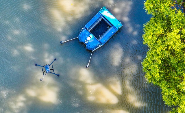 而無人船相較于傳統(tǒng)人工乘船巡河保潔的方式,可以按照提前設(shè)定的航線、時(shí)間等指令,開展無人值守保潔。全過程自動(dòng)識別鎖定水面漂浮物和垃圾,并將其收集打撈進(jìn)入垃圾艙。目前,海曙區(qū)在一些河道保潔壓力較大的區(qū)域設(shè)置無人船船塢,可供無人船充電、垃圾轉(zhuǎn)運(yùn)。