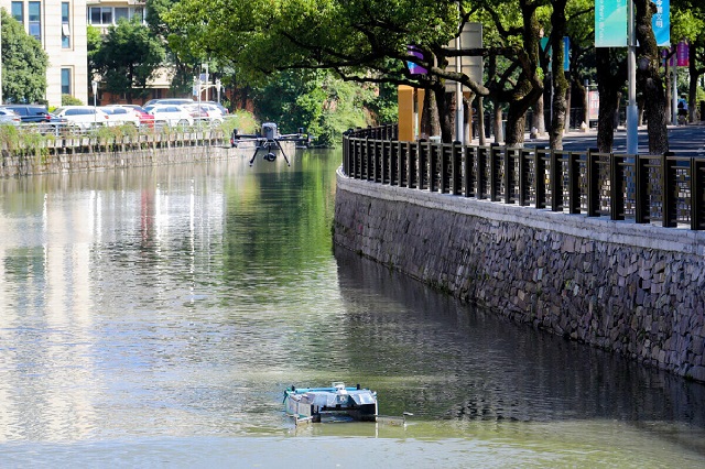 “分頭行動(dòng)!”近日,在寧波海曙區(qū)西門口廣場,隨著指令發(fā)布,只見4架無人機(jī)整齊劃一的騰空而起,紛飛至任務(wù)執(zhí)行方向,開始對北斗河、護(hù)城河、西塘河、賣魚河等4條重點(diǎn)河道進(jìn)行巡查。通過無人機(jī)高分辨率攝像機(jī)航拍,如發(fā)現(xiàn)有河道漂浮物集中等現(xiàn)象,就能夠安排就近巡航的無人船或保潔人員前往指定地點(diǎn)清理。