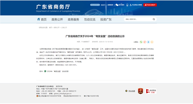 廣東省商務廳關于2024年“粵貿全國”活動目錄的公示