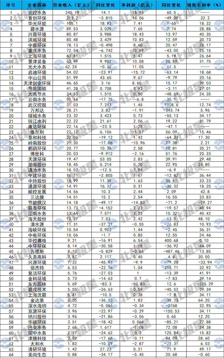 64家水務上市公司2023年業(yè)績(以營收排序)