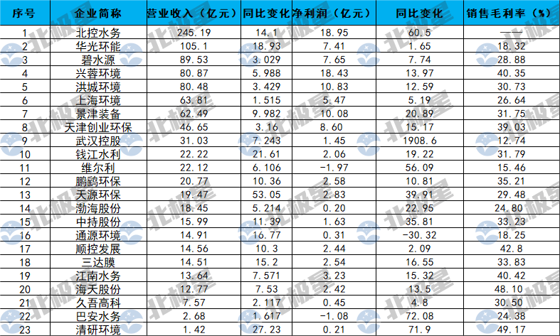 注:光大水務排名按照折合成人民幣計算本文凈利潤指歸母凈利潤