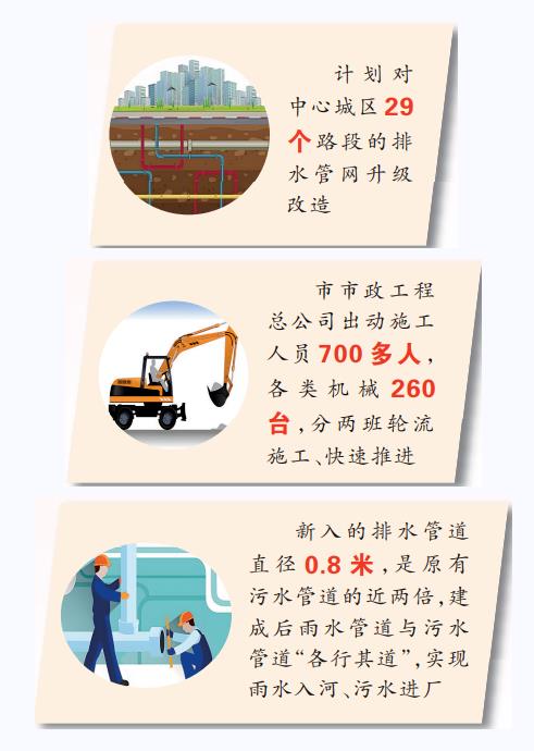 一個(gè)個(gè)項(xiàng)目相繼完工,深埋于城市地下的“毛細(xì)血管”逐漸發(fā)達(dá)。目前,我市已完成七一路(車站路至文化路段)、建設(shè)路(人民路至明山路段)等8個(gè)路段的排水防澇施工改造。正在對(duì)北京大道、武侯路、工業(yè)路、車站路等13個(gè)路段進(jìn)行施工,這13個(gè)路段全部為雨污水未分流路段。通過本次施工改造,將進(jìn)一步優(yōu)化排水系統(tǒng),有效提升中心城區(qū)排水防澇能力,減輕雨天污水處理廠壓力。