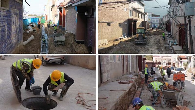 走近牟家坪村和鄭家莊四隊,街道、小巷、房屋旁施工人員還在高效有序地進行施工作業,隨處可見開挖基槽、鋪設管道、道路拓寬的忙碌施工場景。截至目前,項目已完總進度的約55%,鋪設雨水管道914米,污水管道5123米,建成檢查井281座,對街巷內的旱廁、違章建筑進行了拆除改造,硬化拓寬道路2717米。