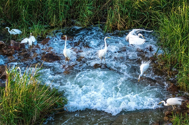 近年來,隨著克拉瑪依市區及周邊水源、生態工程的建成投用,生態環境得到持續改善,在克拉瑪依周邊水域棲息的候鳥越來越多。閔勇攝