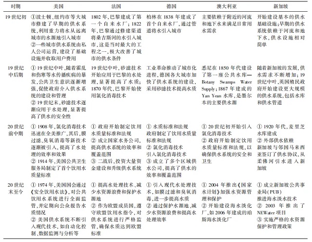 表1主要發(fā)達(dá)國(guó)家供水系統(tǒng)的發(fā)展歷史