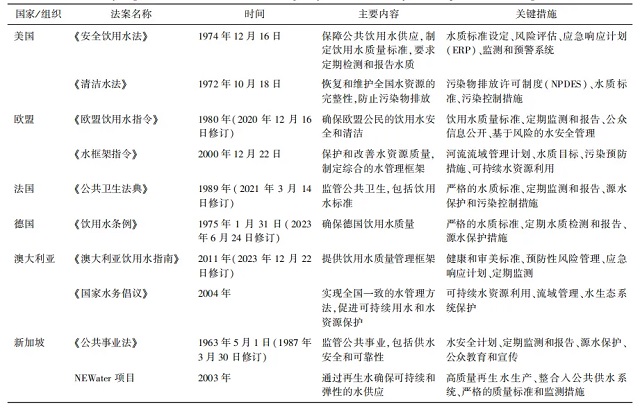 發(fā)達(dá)國(guó)家的法案中不僅對(duì)水質(zhì)安全保護(hù)作了詳細(xì)規(guī)定,還包含了具體的風(fēng)險(xiǎn)應(yīng)急措施。例如,美國(guó)通過(guò)《安全飲用水法》和《清潔水法》設(shè)定了最大污染物含量(maximumcontaminantlevels,MCLs)和處理技術(shù)(treatmenttechniques,TTs)的標(biāo)準(zhǔn),同時(shí)要求建立快速反應(yīng)團(tuán)隊(duì)和應(yīng)急響應(yīng)計(jì)劃,以減少突發(fā)污染事件對(duì)公眾健康的影響。此外,美國(guó)的《未受管制污染物監(jiān)測(cè)法案第五版》法案針對(duì)鉛、PFAS等特定污染物制定了專(zhuān)項(xiàng)工作方案,進(jìn)一步確保了飲用水質(zhì)量的長(zhǎng)期穩(wěn)定。歐盟則通過(guò)《飲用水指令》和《水框架指令》,明確要求成員國(guó)實(shí)施河流流域管理、污染源控制和水資源保護(hù)措施,減少污染物排放,并提升公眾對(duì)飲用水安全的信任度。歐盟還制定了定期水質(zhì)檢測(cè)和污染預(yù)警機(jī)制,確保水質(zhì)標(biāo)準(zhǔn)嚴(yán)格執(zhí)行,并通過(guò)區(qū)域合作提高跨國(guó)水源的管理效率。澳大利亞在《澳大利亞飲用水指南》中包含了水安全計(jì)劃,提出了一系列綜合措施,如水源保護(hù)、污染控制和水質(zhì)監(jiān)控,以減少水污染相關(guān)疾病的發(fā)生。同時(shí),該水安全計(jì)劃參考了國(guó)際標(biāo)準(zhǔn),如危害分析和關(guān)鍵控制點(diǎn)(HACCP)和國(guó)際質(zhì)量管理體系標(biāo)準(zhǔn)ISO9001,全面規(guī)范了水質(zhì)管理的各個(gè)方面,涵蓋水源保護(hù)、污染源管理、質(zhì)量監(jiān)控和應(yīng)急響應(yīng)等內(nèi)容。新加坡則通過(guò)PUB、NEWater項(xiàng)目和綜合水管理體系,采用先進(jìn)的水處理技術(shù)和嚴(yán)格的監(jiān)控手段,確保水質(zhì)的高質(zhì)量和持續(xù)性。新加坡的水質(zhì)安全體系高度依賴(lài)實(shí)時(shí)監(jiān)控、快速反應(yīng)和多元化水源保障,以應(yīng)對(duì)潛在的水質(zhì)問(wèn)題。