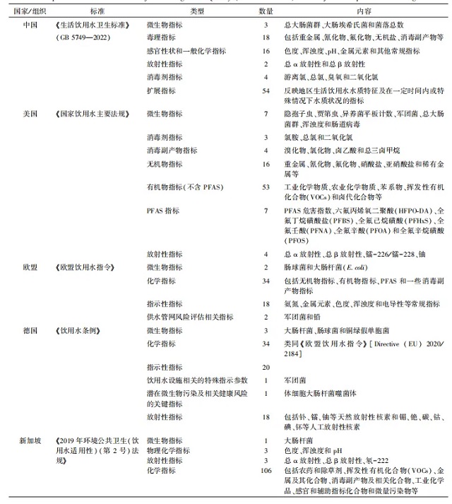 表4中國(guó)《生活飲用水衛(wèi)生標(biāo)準(zhǔn)》(GB5749—2022)與主要發(fā)達(dá)國(guó)家/組織的對(duì)比