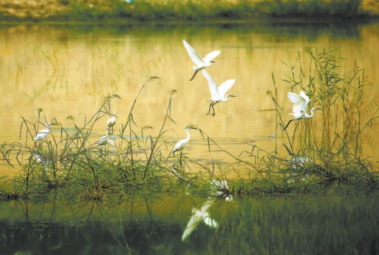 劉立國(guó)是一名攝影愛(ài)好者,總是將鏡頭對(duì)準(zhǔn)家鄉(xiāng)的河。以前,泃河多半年斷流,水少的季節(jié),鳥也不愛(ài)來(lái),隻能拍攝河邊的花草和建筑。前幾年河裡有了水,泃、洳兩河交匯處常有鳥友蹲守,有從城裡來(lái)的,也有從周邊來(lái)的,他就曾目睹上百隻白鷺傍晚翔集。
