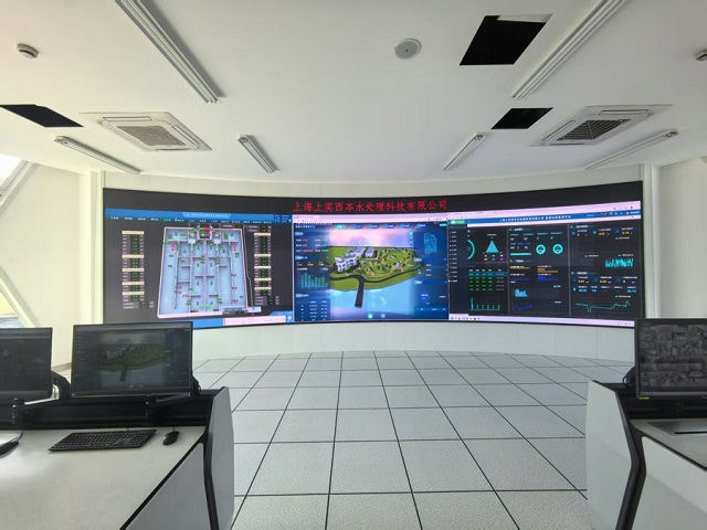 圖為上實環境西岑污水處理廠的數字化中控大屏。