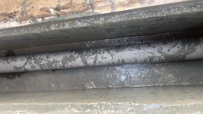 圖為管道、管溝綠色化改造(上:改造前破損情況,下:修補(bǔ)及增加防腐防滲后效果)。
