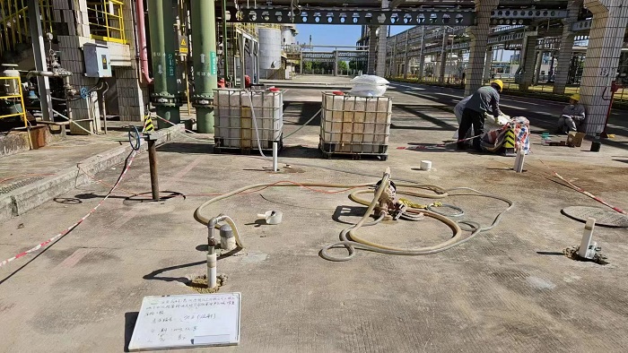 一套防腐防滲“全壽命周期管理”制度。開展綠色化改造時(shí),為解決惠州大亞灣海邊高濕高鹽晝夜溫差大等氣候條件導(dǎo)致的涂層壽命短、防腐防滲作用失效快等問題,企業(yè)探索選用更耐用、機(jī)械性能更優(yōu)的環(huán)氧樹脂(E-44)涂料,替代原先使用的乙烯基玻璃鱗片涂料作為防腐防滲涂層。同時(shí)將涂層巡查、壽命記錄與定期維護(hù)納入日常管理,確保了企業(yè)防腐防滲涂層在其壽命周期內(nèi)持久有效,鞏固源頭“堵”的效果。