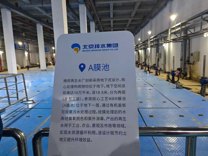 北京市槐房再生水廠是北京市“三年行動方案”建設項目,水廠規模60萬立方米/日,同步在廠區內采用熱水解+消化+板框脫水的污泥處理工藝,實現污泥的無害化處置,是全國規模最大、技術領先的封閉式地下再生水廠。水廠運用系統化建設運營理念和北排集團自主創新的“北排膜”、“北排紅菌”、精確曝氣及國際先進的污泥處置技術裝備,建設運營高保障度的排水和再生水設施。其中,建設地下或半地下的全封閉處理設施,既達到再生水回用標準,又實現再生水設施運行無臭味、低噪音,并提高周邊綠化水平。