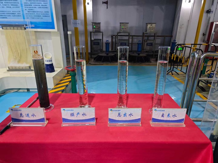 從生物池出來后,污水便進入了膜池?;狈吭偕畯S應用了北排集團自主研發的“膜科技”,采用了先進的膜生物反應器(MBR)污水處理工藝,隱藏于污水下的MBR工藝超濾膜產品,可以高效去除污水中99%的懸浮固體以及絕大部分細菌、微生物。